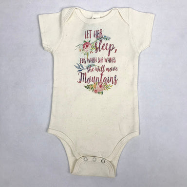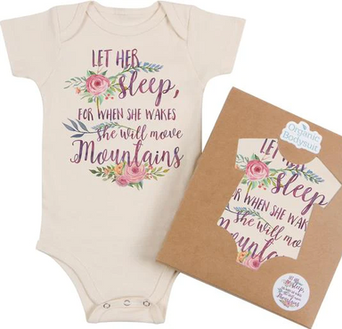 Organic onesie that reads, “Let her sleep, for when she awakes, she will move mountains." Don't you just gaze at your baby whiles she sleeps ima...