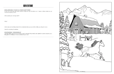 DISCOVER at THE BARN expressive art coloring activity book is created for all ages to enjoy! LAYOUT Left side has reflection for personal growth ...