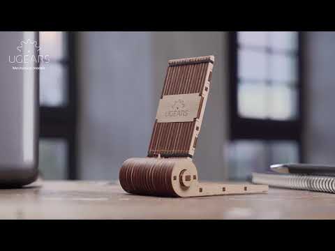 Following the modern trend of minimalistic and functional design, Ugears is proud to present a new clever and practical addition to their collection of wooden mechanical models, the Foldable Phone Holder of the Mini-series.