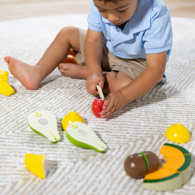 Who wants a piece of fruit? This beautiful wooden fruit set is ready for playtime. The Melissa & Doug Cutting Fruit set includes a wooden knife...