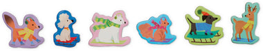 Race across the snow to the hot cocoa stand with this simple magnetic game that’s perfect for on-the-go winter entertainment. Players choose a snow day-ready character like a squirrel on skis or polar bear on a sled. Then take turns using the attached spinner and moving to the next shape that matches on the colorful path. Get lucky if you land on a “spin again” or “jump to”, but watch out for “lose a turn” spots! The first player to arrive at the hot cocoa stand wins.