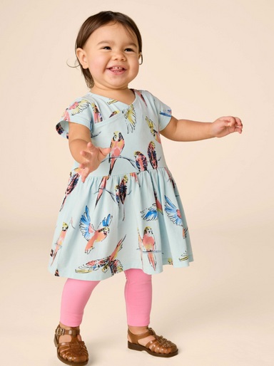Teals favorite wrap neck dress is back, now with an extra twirly skirt for warm-weather fun! This original tropical print adds effortless joy to an...