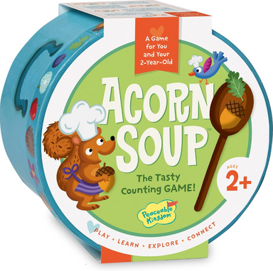 Making Acorn Soup is easy as 1-2-3! The round box bottom doubles as a bowl, which contains wooden ingredients and a sturdy wooden spoon for mixing...