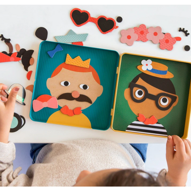 Try to make the silliest face ever with over 25 magnetic pieces that can create over one hundred different looks. With two color play scene backgro...