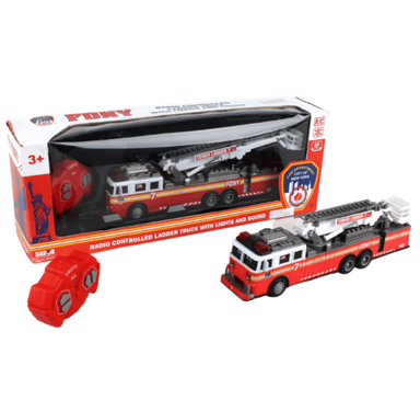 This plastic RC FDNY Ladder Truck, modeled after the historic New York Fire Department ladder trucks, is approximately 11 inches long. The ladder r...