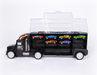 Load up imaginative play for car-loving kiddos! This impressive transporter truck is filled with 6 colorful diecast cars and accessories. The flip-open clear front displays the cars as the truck rolls by, and a convenient carry handle makes it easy to rev up the fun anywhere you wander.