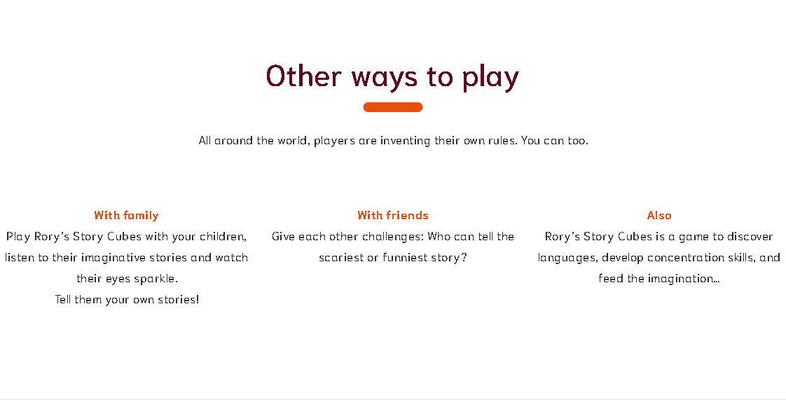 Discover Rory’s Story Cubes with nine dice from the Classic edition. Throw the dice, nine symbols appear. Use them to tell your story!