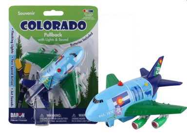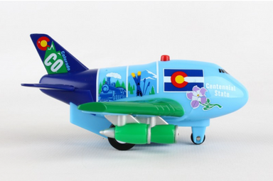 View full detailsThis stylized aircraft features electronic jet sound and flashing red lights, activated by the push of a button on top of the fuselage! Pull the pl...