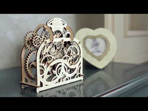 Bring home a touch of magic with the UGears Theater. This 3D model kit comes with everything you need to make a fully functioning, moving stage. The theme of this evening's production is a medieval classic including a princess, a dragon, a chest of treasure, and a brave night, among others, who dance around the backstage area and step into the spotlight with a quick spin of the drive wheel. The frame is made with gently curling vine patterns that add ambiance to the twirling players. Although resolutely mechanical in design, each piece has warm details to give it life as well as practicality. Drawing inspiration from steam-punk gear themes and detailed fantasy stories, this mechanical theater is ready to sweep you away with an enjoyable afternoon of assembly that results in a lovely piece of art.